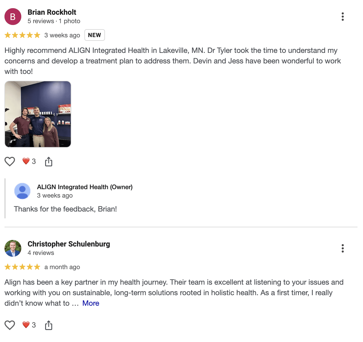 Chiropractic helps interrupt that pattern earlier, when problems are more reversible. And ALIGN has been helping the Lakeville community solve their pain problems naturally, for years.